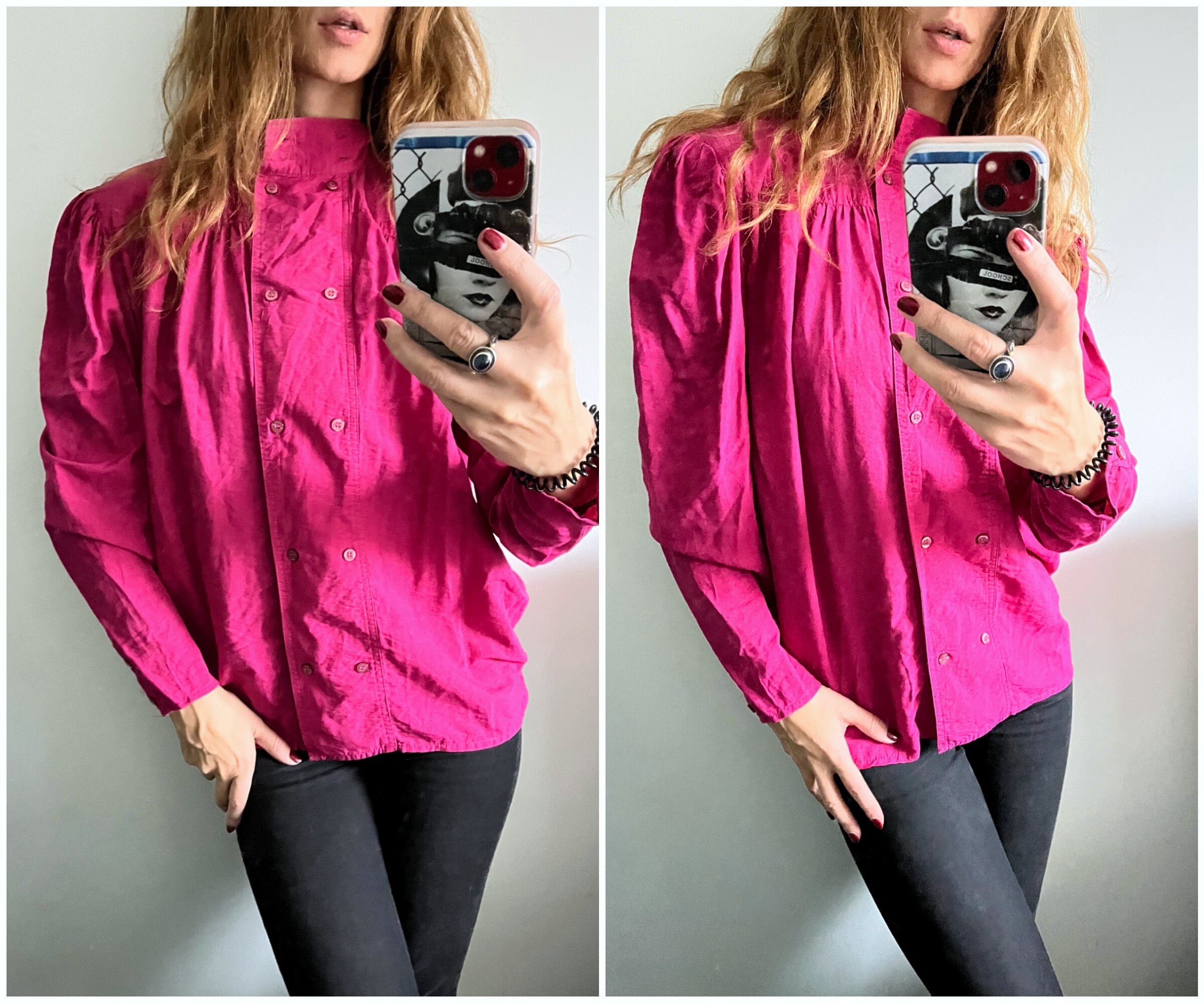 Magenta Pink Buttoned Blouse Vintage 80s Blouse Shirt Etsy